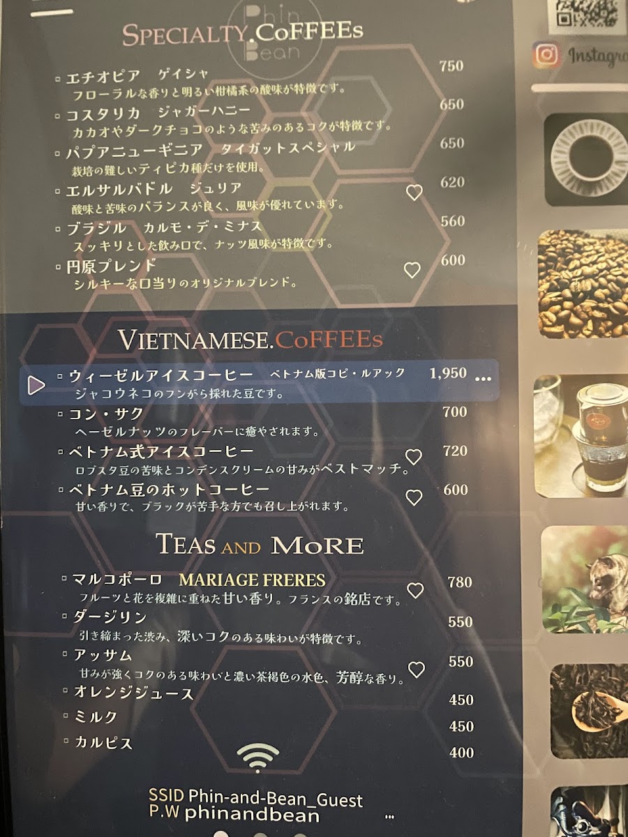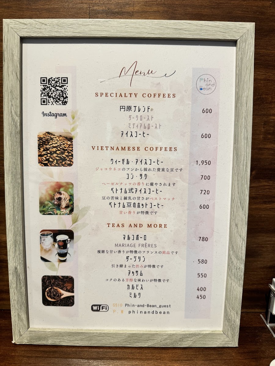 Welcome to Phin and Bean, a charming café nestled in the serene mountainous area of Enbara, Yamagata, Gifu, Japan. This hidden gem offers a delightful menu featuring authentic Vietnamese coffee, with standout items like the Vietnamese Iced Coffee, expertly crafted using robusta beans and sweetened condensed milk for a perfect balance of flavors at just JP¥600.